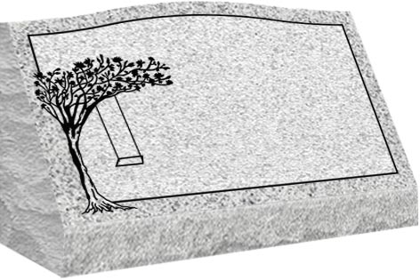 Slant come with a slanted polished face and rock pitched edges, serpentine top with a straight back and are installed on a concrete foundation or on a granite base.