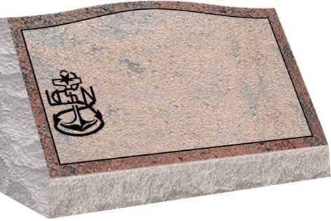 Slant come with a slanted polished face and rock pitched edges, serpentine top with a straight back and are installed on a concrete foundation or on a granite base.
