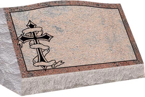 Slant come with a slanted polished face and rock pitched edges, serpentine top with a straight back and are installed on a concrete foundation or on a granite base.