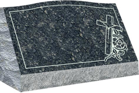 Slant come with a slanted polished face and rock pitched edges, serpentine top with a straight back and are installed on a concrete foundation or on a granite base.