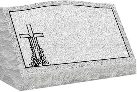 Slant come with a slanted polished face and rock pitched edges, serpentine top with a straight back and are installed on a concrete foundation or on a granite base.