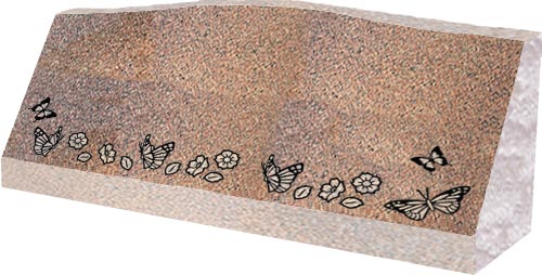 Slant come with a slanted polished face and rock pitched edges, serpentine top with a straight back and are installed on a concrete foundation or on a granite base.