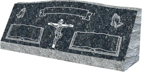 Slant come with a slanted polished face and rock pitched edges, serpentine top with a straight back and are installed on a concrete foundation or on a granite base.