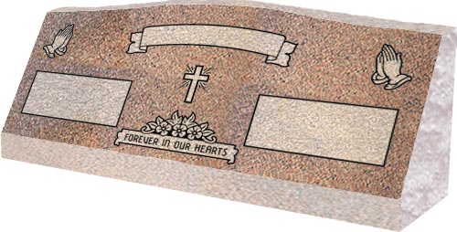 Slant come with a slanted polished face and rock pitched edges, serpentine top with a straight back and are installed on a concrete foundation or on a granite base.
