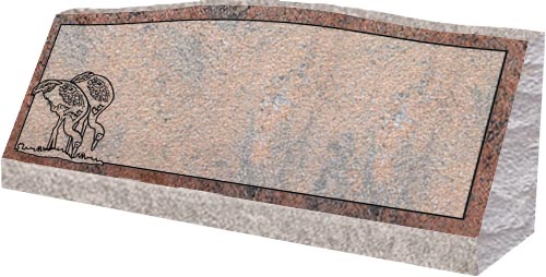 Slant come with a slanted polished face and rock pitched edges, serpentine top with a straight back and are installed on a concrete foundation or on a granite base.