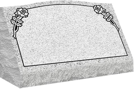 Slant come with a slanted polished face and rock pitched edges, serpentine top with a straight back and are installed on a concrete foundation or on a granite base.