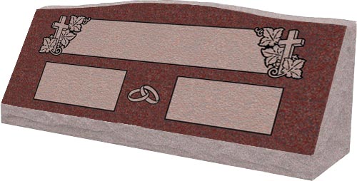 Slant come with a slanted polished face and rock pitched edges, serpentine top with a straight back and are installed on a concrete foundation or on a granite base.