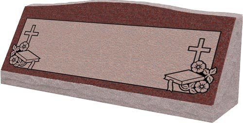 Slant come with a slanted polished face and rock pitched edges, serpentine top with a straight back and are installed on a concrete foundation or on a granite base.