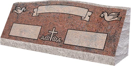 Slant come with a slanted polished face and rock pitched edges, serpentine top with a straight back and are installed on a concrete foundation or on a granite base.